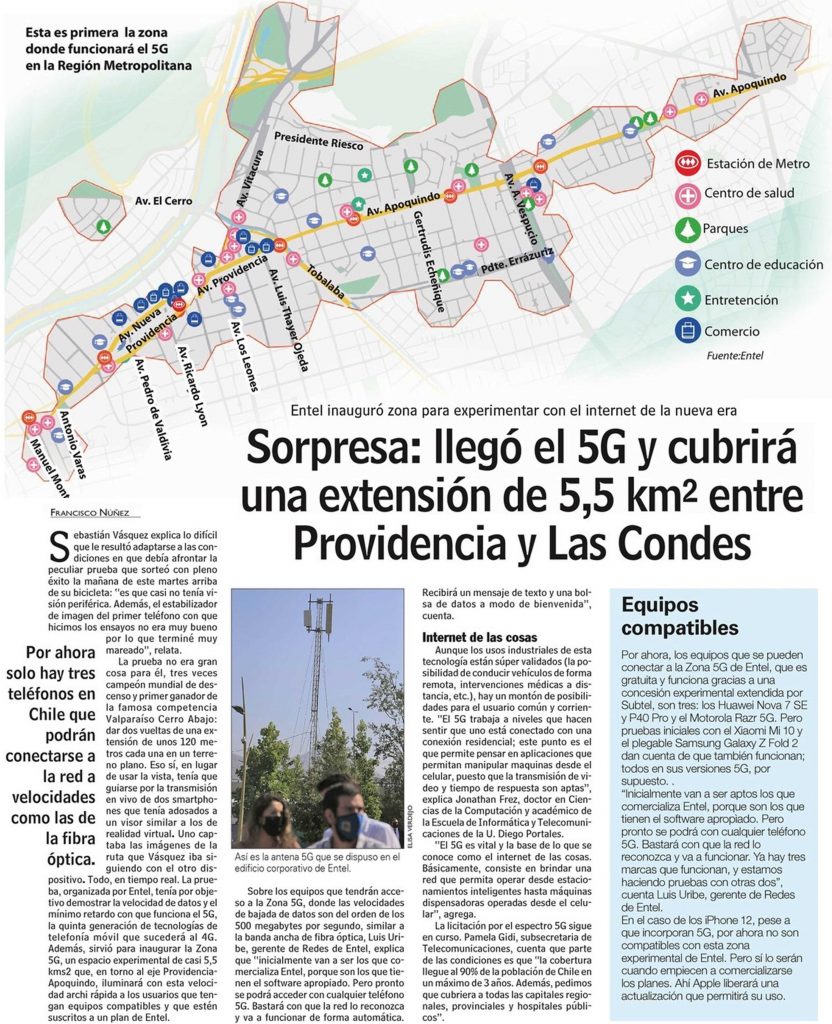 Sorpresa: llegó el 5G y cubrirá una extensión de 5,5 km2 entre Providencia y Las Condes