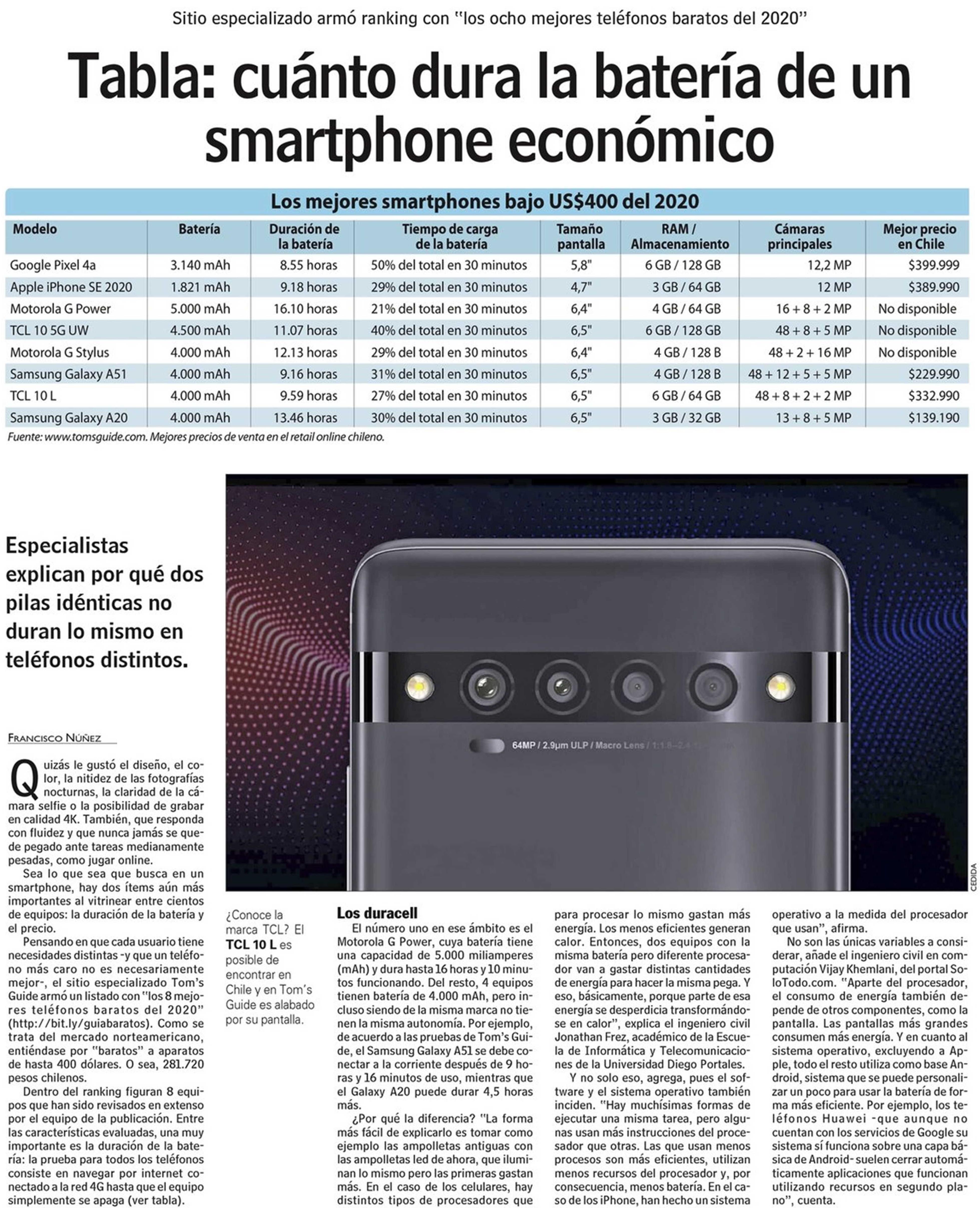 Tabla: cuánto dura la batería de un smartphone económico